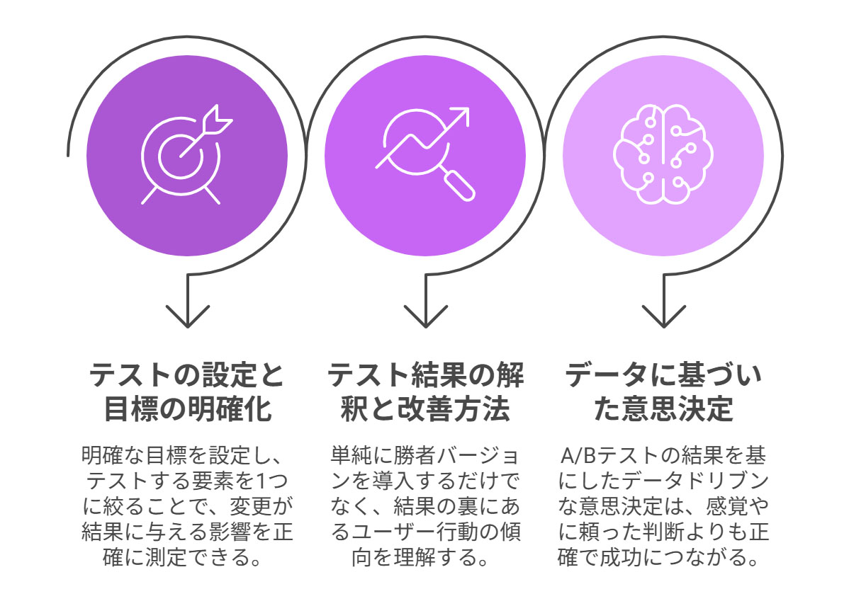 これらのポイントを押さえることでテストの成功率を高め、データに基づいた意思決定が可能になります。