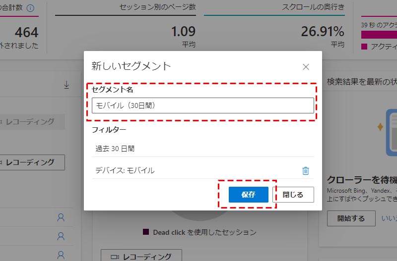 セグメント名を入力して、「保存」をクリックします。