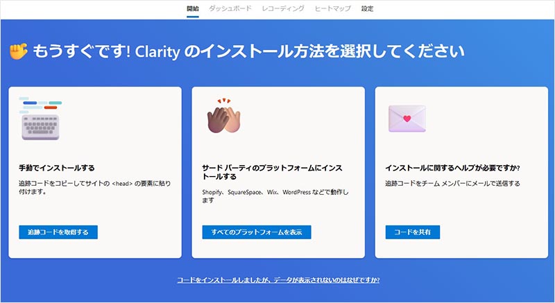 ここからは、新規で Clarity のアカウントを発行してウェブサイトに設置する手順について説明していきます。