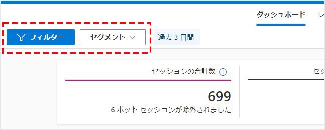ダッシュボードでは他に、データ対象とするユーザーを絞り込むための「フィルター」と「セグメント」の機能もあります。