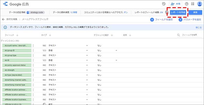画面が切り替わったら接続は完了し、Looker Studio(旧:データポータル)と Google 広告が連携されている状態となります。