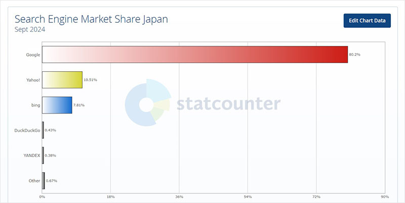 ↓ 2024年9月の日本国内の検索エンジンシェア率