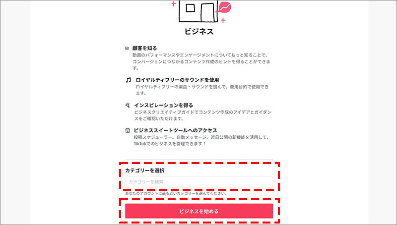 カテゴリーを選択し、「ビジネスを始める」をクリックします。