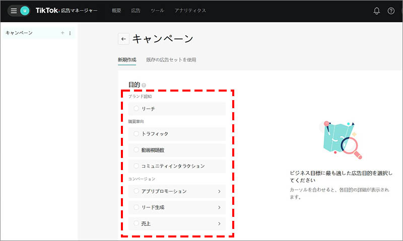 キャンペーンの目的を設定する