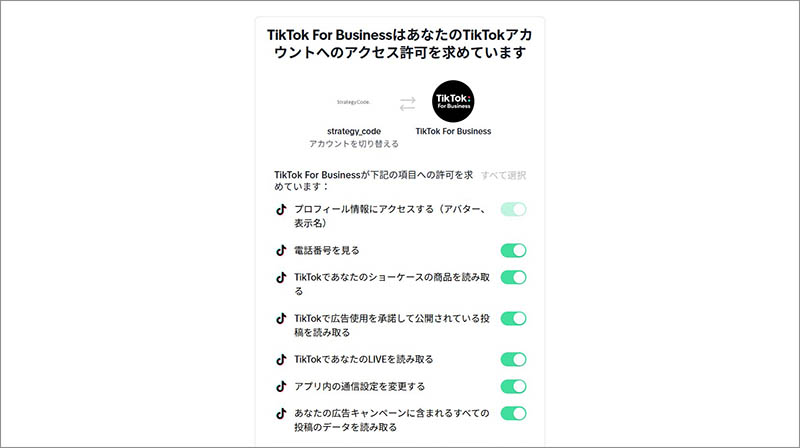 TikTok for Business のTikTokアカウントへのアクセス許可を承認します。