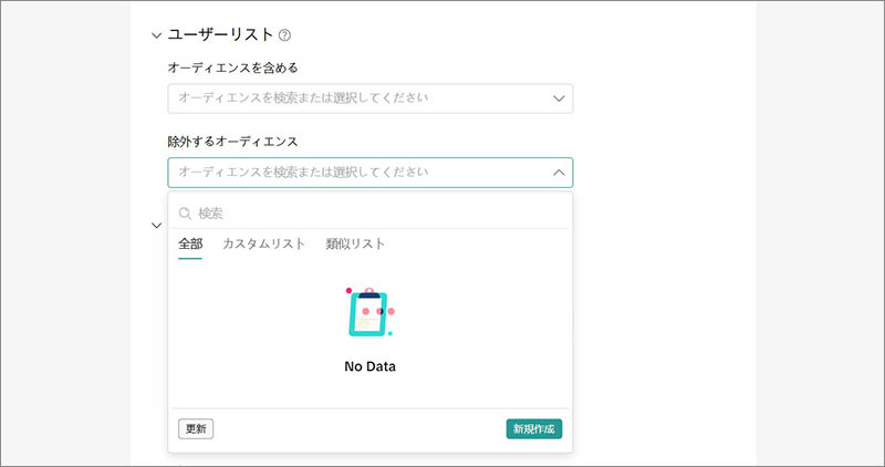 カスタムリストや類似リストを作成して、広告の表示対象に含める、または除外するユーザーリストを指定できます。