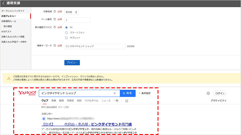Yahoo! 広告プレビューツールの基本機能