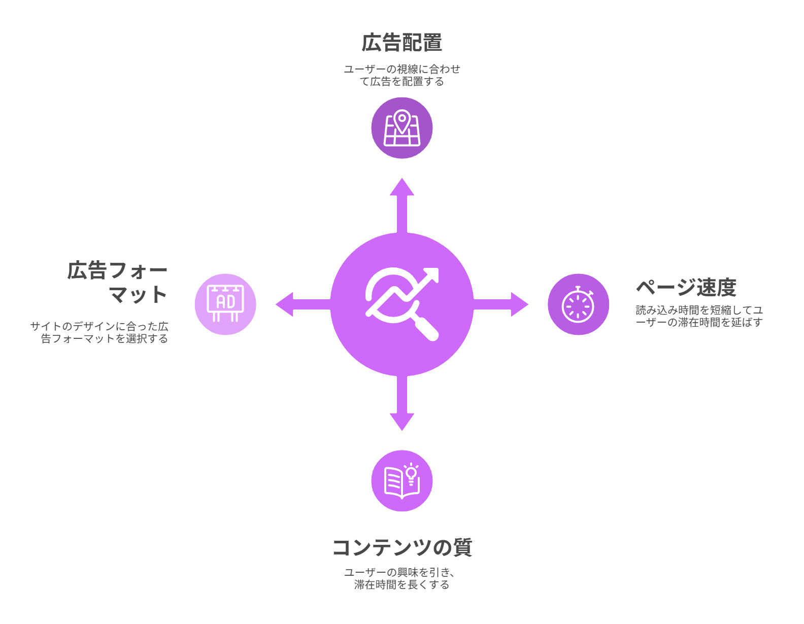 広告の配置や表示速度、コンテンツの質を改善することで、ユーザーの滞在時間が長くなり、より多くのインプレッションを獲得できる可能性が高まります。