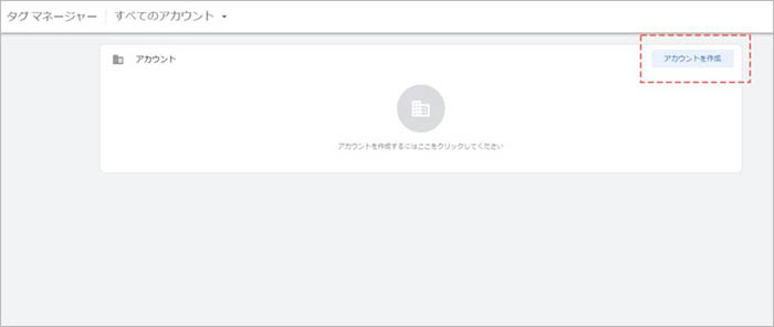 Googleタグマネージャーにログイン後、「アカウントを作成」をクリックします