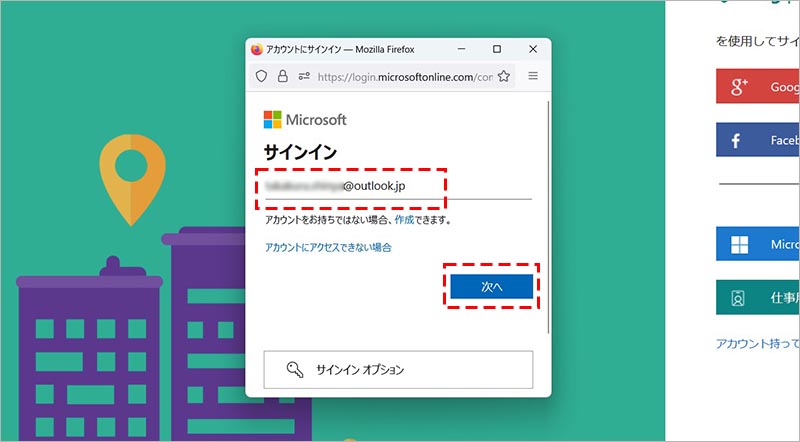 ※今回は、「Microsoft アカウント」を選択して説明します