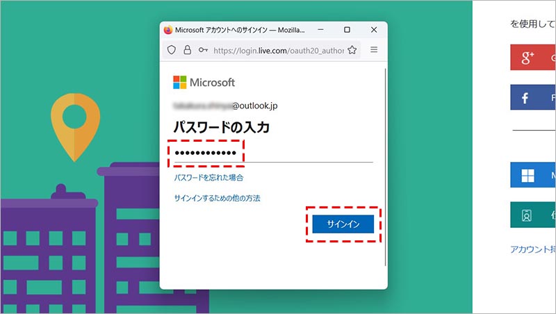 パスワードを入力して、「サインイン」をクリックします。