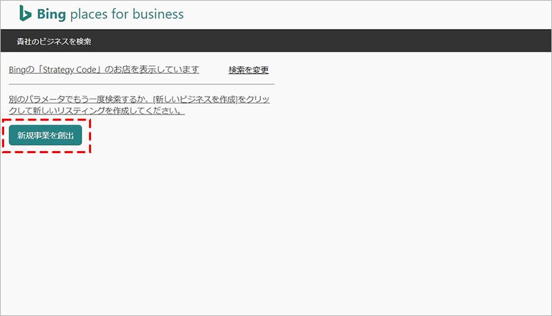既に登録されているビジネス情報が表示されなければ、「新規事業を創出」をクリックします。